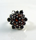 Vintage Sterling Silver Large Garnet Cluster Ring