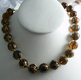 Vintage Trifari Amber Lucite Bead Filigree Necklace