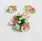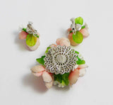 Vintage Vendome Soft Plastic Pink Flower and Glass Leaves Demi Parure