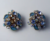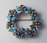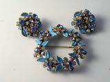 Vintage Weiss Blue Enamel And Ab Rhinestone Brooch And Earrings Set