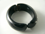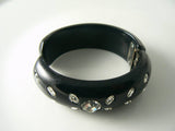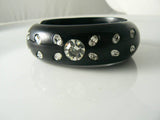 WEISS Unsigned Black Thermoset Sparkling Ice Rhinestone Clamper Bracelet