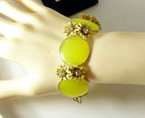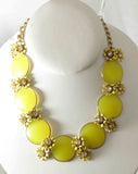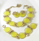 Yellow Bead Enamel and Rhinestone Flowers Necklace Bracelet Earring Set