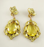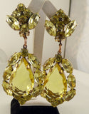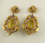 Yellow Czech Glass Huge Dangling Clip Earrings
