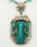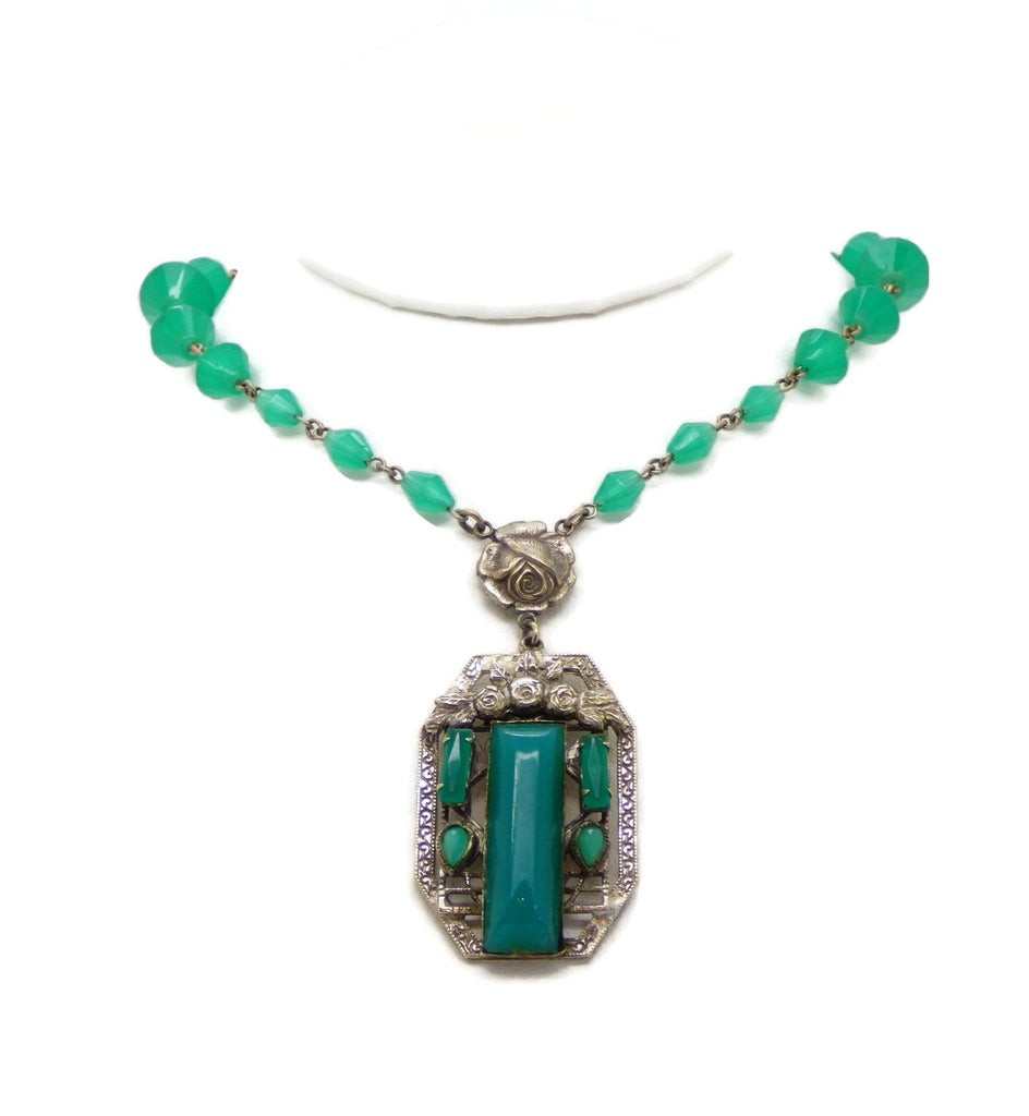 Vintage Chrysoprase Glass Czech Necklace Art Deco Rose Lariat