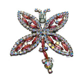 Czech Glass Bijoux MG Pink AB Rhinestone Dragonfly Pin Brooch. Set in non-plated brass. Signed Bijoux MG. This has pink rhinestones and AB rhinestones. Measures 3 1/2" by 3" Excellent condition.