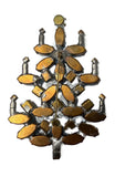 Czech Glass Blue and Clear Stone Christmas Tree pin. Set in non-plated brass. Measures 3 1/4" by 2" Excellent condition.