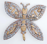 Czech Glass Bijoux MG Rhinestone Dragonfly Pin Brooch. Set in non-plated brass. Signed Bijoux MG. Measures 3 1/2" by 3 1/2" Excellent condition.
