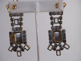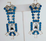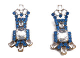 Czech Glass Husar D Blue Rhinestone Earrings. Set in non-plated brass. Signed Husar D. These are post earrings. Measure 2 1/4" by 1/2". Very good vintage condition.