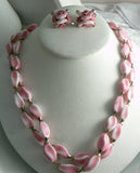 Alice Caviness Double Strand Pink Glass Necklace And Earring Set