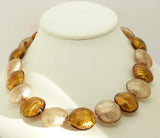 Le Perle Sterling Silver Vermeil Dark Gold and Tan Venetian Murano Foil Glass Beaded Necklace