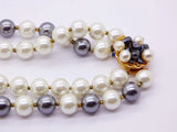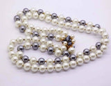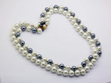 Miriam Haskell Black and White Glass Pearl Necklace. Signed on the clasp Miriam Haskell. The white pearls are 10 mm in diameter and the black pearls are 8 mm. The necklace is 20" in length including the clasp. Excellent condition with some very minor flecks on the pearls. circa 1960's.