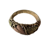 Black Hills 10 K Tri Colored Gold Leaf Ring. Stamped Black Hills Gold Co. 10 K on the inside of the band. Size 5.5 Excellent condition.