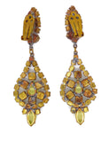 Husar D Czech Vaseline Uranium Clip Earrings. Set in non-plated brass. Measure 3 1/4" by 1". Excellent condition.