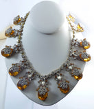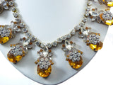 Statement Necklace Czech Glass Large Amber Stones Clear Rhinestones