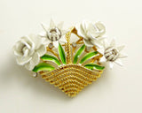 • Vintage Crown Trifari Enamel Rhinestone Flower Basket Brooch - Vintage Lane Jewelry