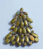 Czech Glass Blue Rhinestone Clear Navettes Husar D. Christmas Tree Pin, X-mas pin, Holiday Brooch. Set in non-plated brass. Measures 2 1/4" by 2" Excellent condition.