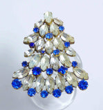 Czech Glass Blue Rhinestone Clear Navettes Husar D. Christmas Tree Pin, X-mas pin, Holiday Brooch