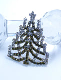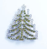 Czech Glass Green and Clear Rhinestone Christmas Tree Brooch, Xmas Pin, Holiday Brooch