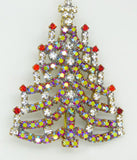 Czech Glass Red AB Rhinestone Christmas Tree Brooch, Xmas Pin, Holiday Brooch.