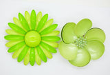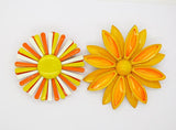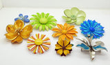 Enamel Flower Lot, 9 pins, Flower Brooches. The green and yellow daisy pin is the largest and measures 3" in diameter. All in very good vintage condition with the exception of the large orange flower has some scuffing on the petals.