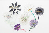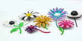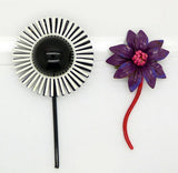 Enamel Flowers with Stems Lot, 7 pins, Flower Brooches. The largest flower pin measures 2 3/4" in diameter. All in very good vintage condition with the exception of the black and white daisy has a repair on the stem and the tan daisy has a broken stem.