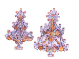 Husar D. Czech Glass Pink Christmas tree Pair. Set in non-plated brass. Both tress are signed Husar D. One of the trees measures 2 1/2" by 2" and the other is 2 1/4" by 1 1/4" Both are in excellent condition.