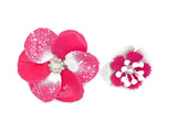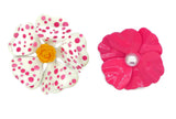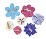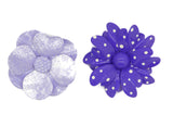 8 Enamel Flower pins. 2 have polka dots and most of them are tiered giving them a dimensional look. Some are embellished with pearl or rhinestone centers. The largest light blue daisy measures 3" in dimeter. All in excellent condition.
