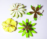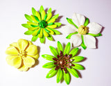 Sarah Coventry Enamel Flower Pins, Green and Yellow