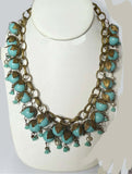 Miriam Haskell Gold Leaf and Turquoise Beaded Necklace