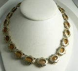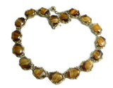 Vintage Brown Agate Glass Necklace. This has open back glass stones set in gold tone metal. The stones measure 18 mm by 12 mm. Measures 18" in length including the extension chain. Heavy well made necklace in excellent condition. circa 1960's.