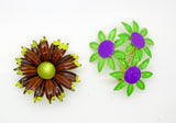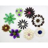 Vintage Enamel Flower Pins, Magnolias, Polka Dots and more.... The largest measuring 2 1/2" in diameter. All in very good condition with the exception of the polka dot flower has a chip and a small stain.