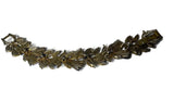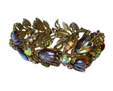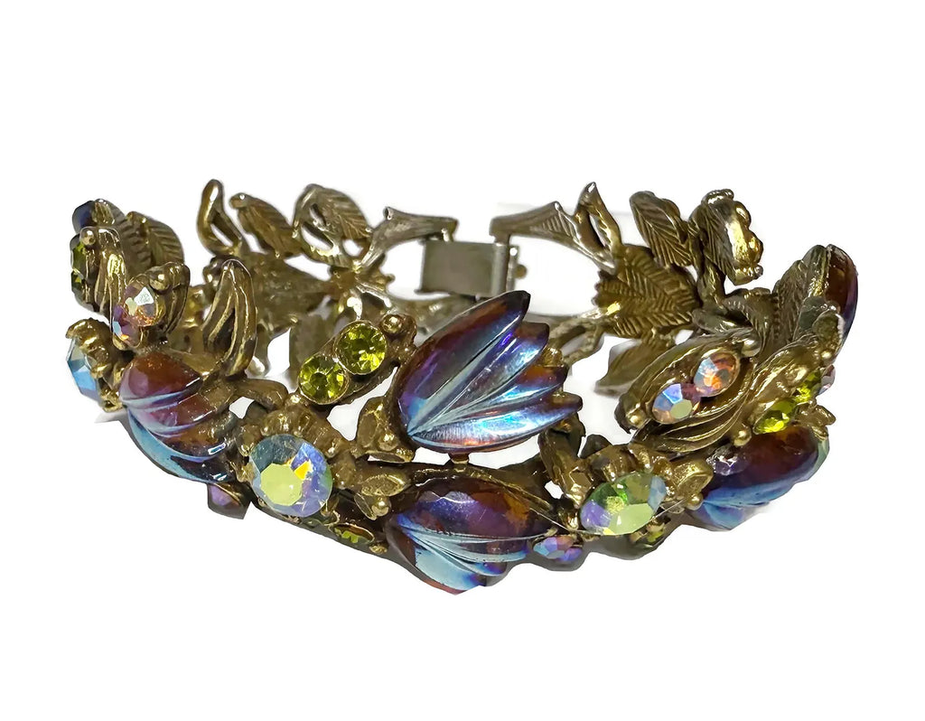 Florenza Art Glass Bracelet. Set in an antiqued gold metal. Stamped Florenza. Measures 7" in length. Very good vintage condition.